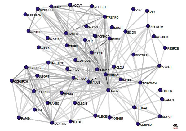 Framing, in its specific application to media research, is defined as the “central organizing idea for making sense of an issue or conflict and suggesting what is at stake.” It can be found in various disciplines of the social sciences, most notably in political science, psychology, and communication research. Due to the fuzzy nature of frames, identifying them has proven to be quite complex. Here, we perform framing analysis on a corpus of news texts on the population and family planning issue in the Philippines by operating two varying approaches: human-based and computer-assisted. A singular holistic approach to framing is initially implemented where coders/domain experts classify each news text to a specific pre-defined frame. This traditional approach is known to raise serious issues on the reliability and validity of the results mainly due to human’s intrinsic biases. To address such issues, we propose a novel technique that synergically combines the method of Matthes and Kohring (2008) and complex networks approach. In our model, the codings of texts are cast as a network of content analytic variables (CAVs). Our proposed method tackles the clustering issue that MK raised, which plagues framing scholars in the quantitative identification of news frames in texts. Moreover, the research is significant on a societal level as it also aims to gain perspective for reasons on the lack of progress in discussions about suitable population policies in most developing countries like the Philippines.